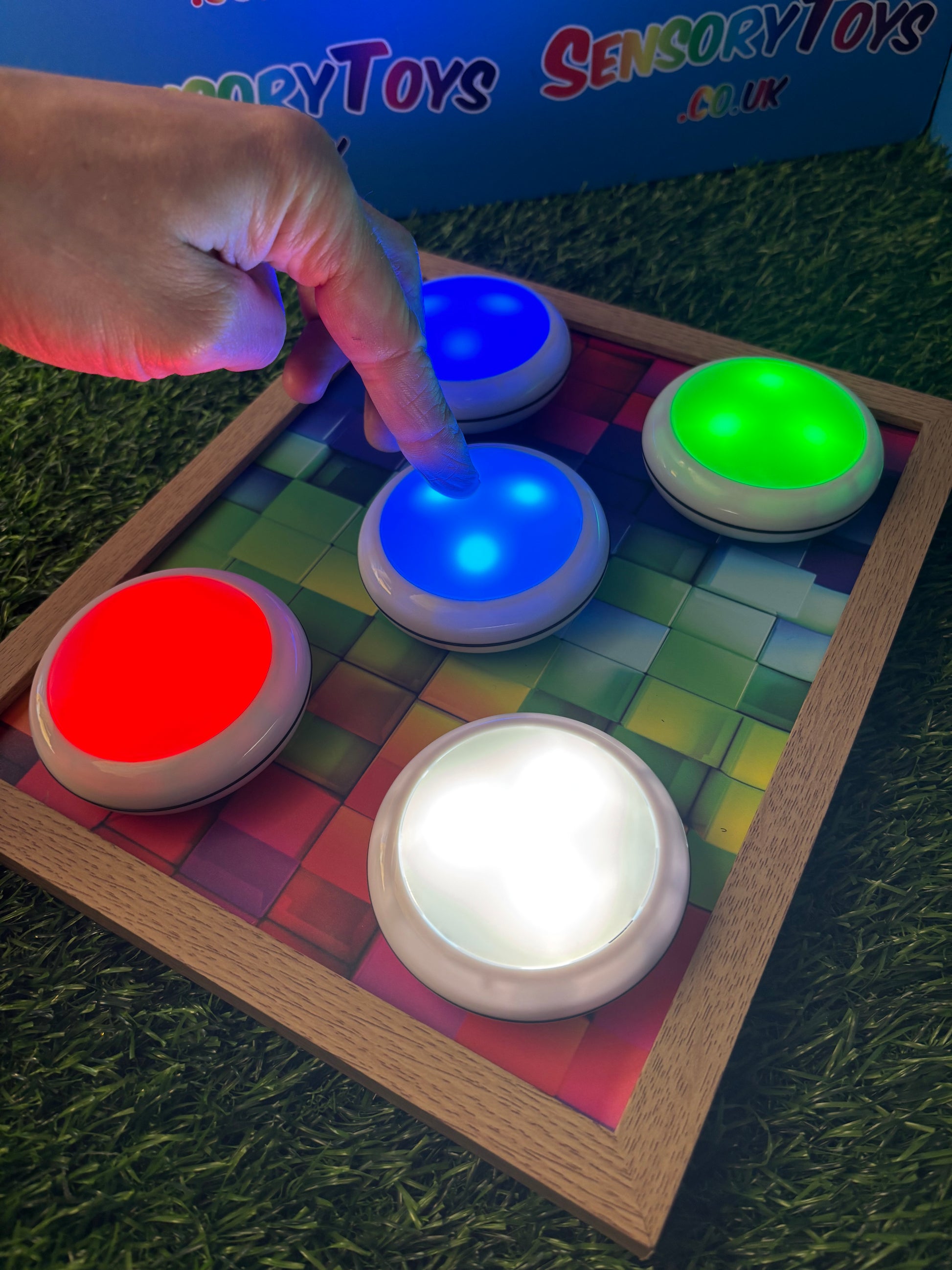 Bring movement, colour, and sensory stimulation into any space with the Interactive Sensory & Fidget Touch Light Board! Designed for ages 11+, this wall- or table-mounted sensory tool combines fidgeting, visual effects, and interactive learning to create a truly engaging experience.