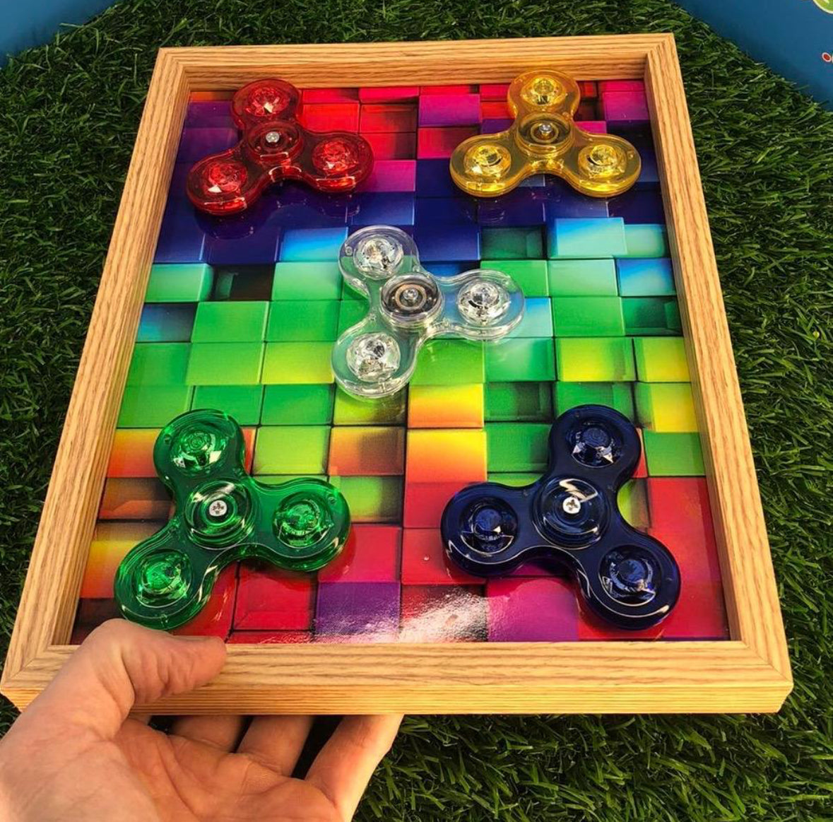 Lights, spin, action! Checkout this Fidget sensory board for any spinning/ light up fans! A custom made, colourful, handheld or wall mounted sensory toy that’s decked out with five spinners that light up! Easy to spin with or without clicking the lights on.